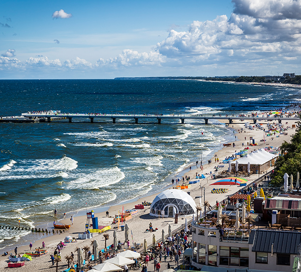 szerokich piaszczystych plaż oraz bogatych zasobów naturalnych, takich jak jod, solanka, borowina, a także wody mineralne. Każdego roku odwiedza je ponad 500 000 gości. Jednak Kołobrzeg to nie tylko turystyka. Dzięki inwestycjom w infrastrukturę miasto staje się coraz bardziej przyjaznym miejscem do życia, pracy i rozwoju biznesu.