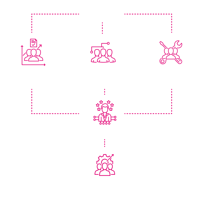 W modelu tej usługi zespół vCISO współpracuje z zarządem, zespołami biznesowymi oraz działem IT organizacji zapewniając spójne zarządzanie cyberbezpieczeństwem.